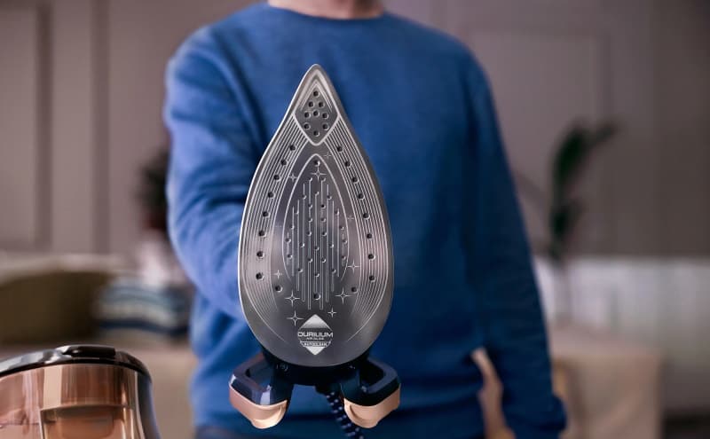 Are talpă Durilium AirGlide Autoclean care alunecă uşor pe orice tip de ţesătură, are funcţie de auto-curăţare şi este rezistentă la zgârieturi.