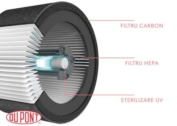 + Elimina particule de peste 2.5 microni, de 30 ori mai mici decat grosimea unui fir de par.