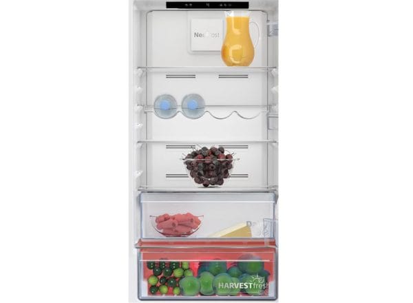 Beko BCNA275E5SN este o combina frigorifică incorporabilă de 254 litri, clasificată în Clasa D și echipată cu tehnologii avansate precum NeoFrost Dual Cooling și HarvestFresh. Proiectată de Beko, un brand recunoscut pentru calitate și inovație, această combina este ideală pentru familii moderne, oferind soluții eficiente pentru păstrarea alimentelor proaspete.