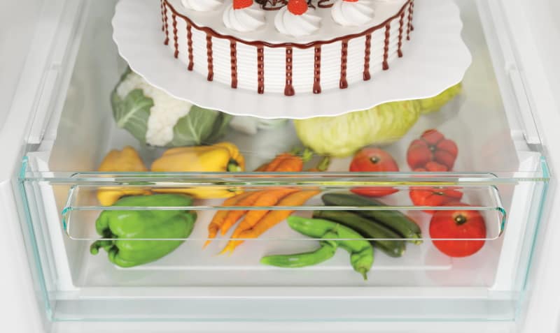În partea de jos a zonei de frigider se află un compartiment de depozitare de legume și fructe proaspete, cu un sistem de reglare a nivelului de umiditate. Temperatura din această zonă este păstrată la +5ºC.