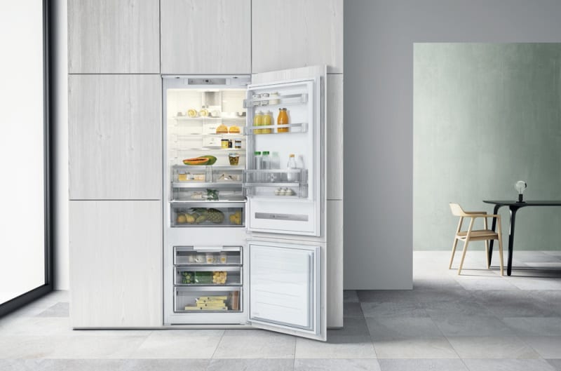Acest lucru este in mod special vizibil in zona frigiderului, ce are 299 l, cu 6 rafturi si sistem de dezghetare automat. Compartimentul pentru legume & fructe nu lipseste nici el.