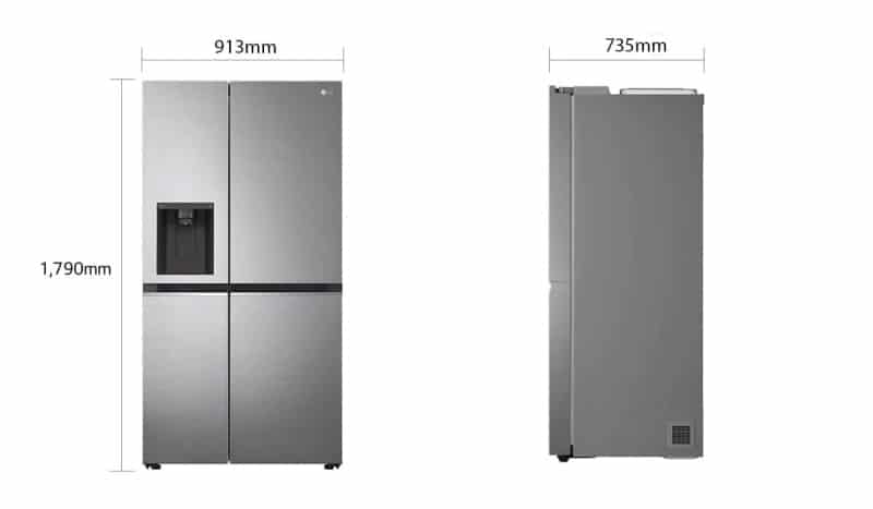 Dimensiunile lui LG GSJV71PZTE sunt destul de mari, cu o latime de 91.3 cm, adancimea de 73.5 cm, iar inaltimea de 179 cm.