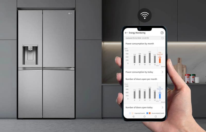 - Aplicatia ThinQ: dotat cu conectivitate WiFi, frigiderul poate fi controlat de la distanta. Puteti afla daca sunt probleme, cat consuma, etc.