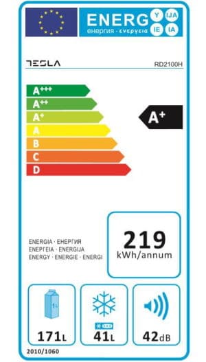 Product Description: Tesla RD2100H este un frigider cu doua usi, o capacitate de 212 litri, si clasa energetica A+. Are dezghetare automata la frigider, dar sistemul este manual pentru congelator. Garantia de 5 ani si pretul de sub 1000 de lei sunt marile sale avantaje.