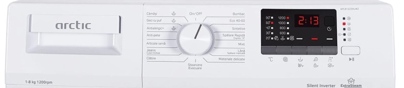 Product Description: Arctic APL81223XLW2 este o masina de spalat rufe cu o capacitate de 8 kg, model cu o centrifugare buna de pana la 1200 RPM, dar si cu un consum mic (clasa A+++). Modelul are motor Silent Inverter, spalare cu abur, dar si program de curatare a tamburului.