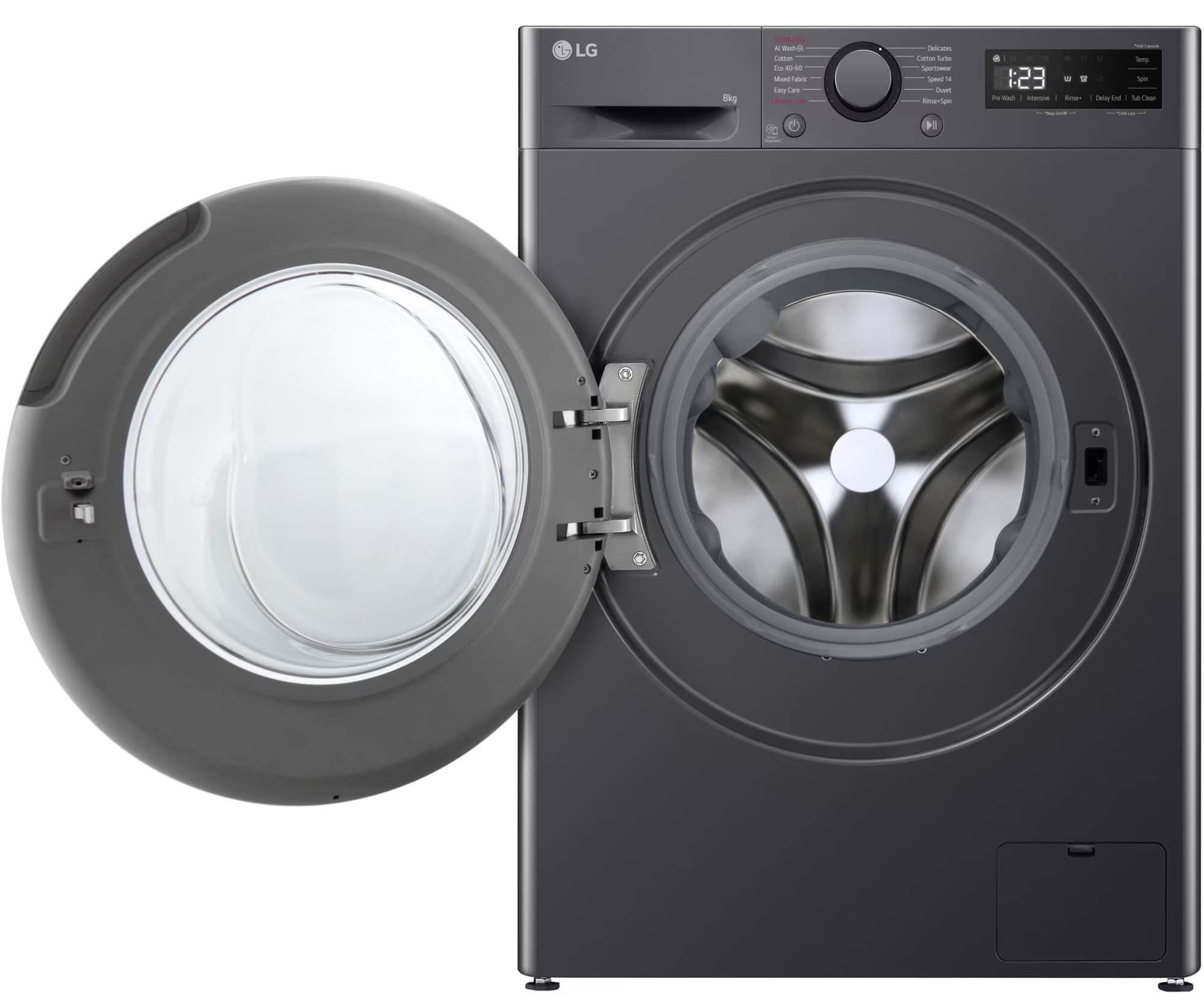 Mașina de spălat LG F2WR508SBM, deși compactă, oferă suficient spațiu pentru nevoile unei familii de 4 persoane. Designul său slim permite integrarea ușoară în spații mai mici, făcând-o perfectă pentru apartamentele urbane.
