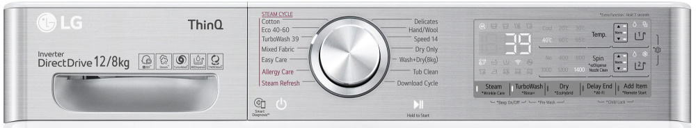 In primul rand, este de apreciat capacitatea de incarcare a acestei masini de spalat. LG F4DV912H2EA poate spala pana la 12 kg de rufe, iar in modul de uscare accepta 8 kg. Diferenta aceasta se gaseste pe toate masinile de spalat ce au si functie de uscare. Recomand acest model familiilor medii si mari, chiar si cu 6 membri.