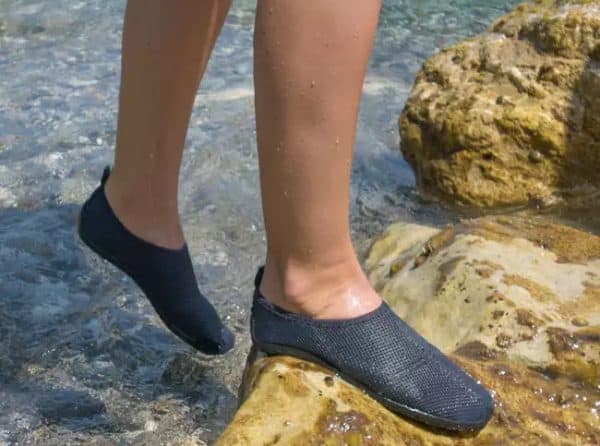 Poate vi se pare un moft, dar cand intrati in apa va puteti proteja picioarele cu o pereche de incaltari dedicate pentru purtare in apa. Acesti Aquashoes vin in multe variante, una din ele fiind prezentata mai jos.